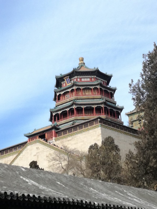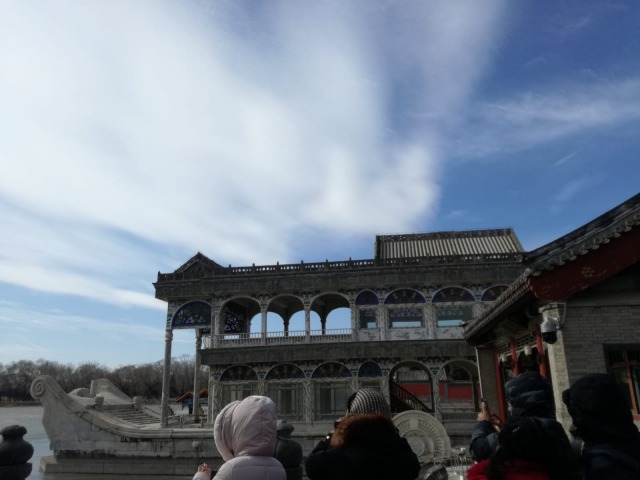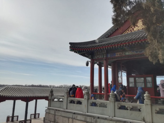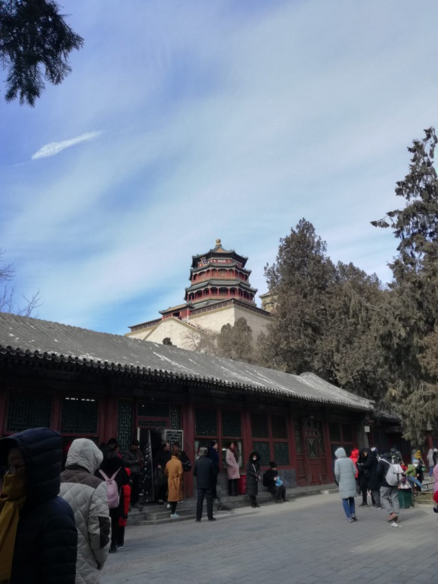 Giovedì 7 febbraio La mattina siamo andati a visitare il palazzo d'estate (頤和園 Yíhéyuán, giardino della coltivazione dell'armonia) È uno dei parchi reali meglio preservati al mondo ed il più grande della Cina. Trovandosi a soli 15 km dal centro di Pechino, una volta varcata la soglia, si entra in un'altra dimensione. Da come suggerisce il nome, ogni elemento è stato progettato per fare in modo che si trovi in perfetta armonia con la natura. Il parco consiste sostanzialmente nella collina della Longevità ed il lago Kunming, che occupa quasi il 75% della superficie totale del parco. Ha quasi 270 anni, infatti la sua costruzione fu commissionata nel 1750 dal quarto imperatore della dinastia Ming: l'imperatore Qianglong. Successivamente fu distrutto in parte nel periodo della guerra dell'oppio per poi essere ricostruito nel 1886. Il nome Yihe Yuan gli venne dato un paio di anni dopo, quando l'imperatrice vedova Cixi decise di usarlo come residenza estiva. All'inizio del XX secolo fu nuovamente distrutto e ricostruito, ma con la caduta dell'impero nel 1911 si ritrovò in uno stato di abbandono, finché nel 1924 non venne aperto al pubblico per poi essere dichiarato Patrimonio dell'Umanità dall'UNESCO.
