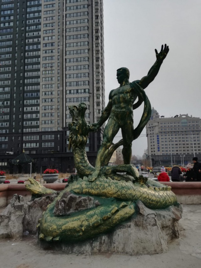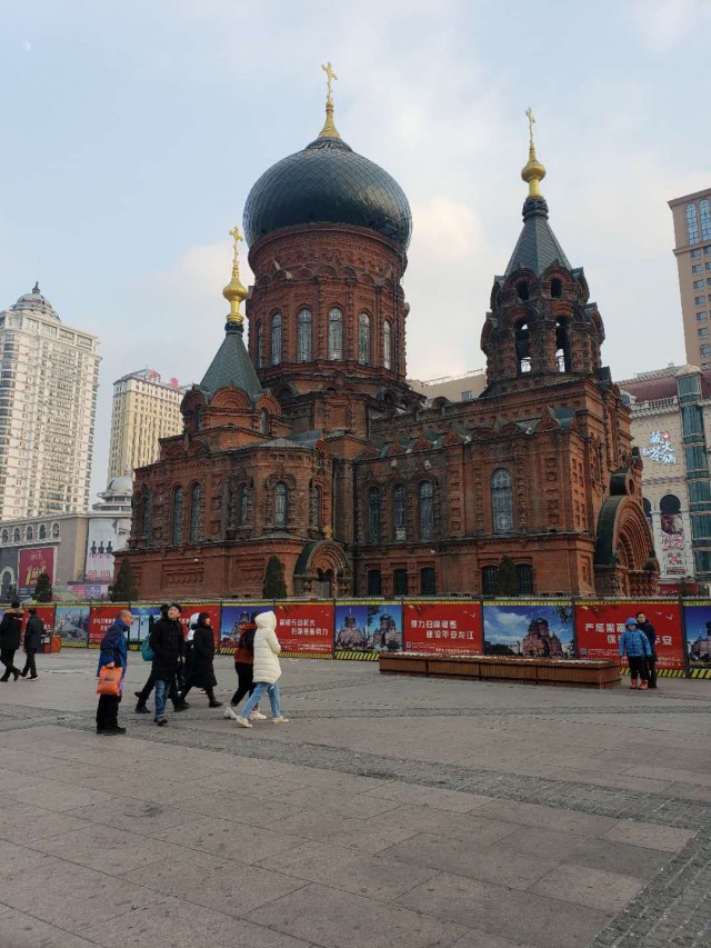 ST. SOPHIA CHURCH, 圣索菲亚教堂(shèng Suǒfēiyà jiàotáng). La chiesa di Santa Sofia è un'importante monumento di Harbin. Fu costruita nel marzo del 1907ed ampliata tra il 1923 ed il 1932, quando fu conclusa la sua costruzione. È una chiesa di rito ortodosso in stile neobizantino, inoltre è il miglior esempio di architettura bizantina in tutta la Cina. Fu chiusa durante il periodo del "Grande balzo in avanti" e della rivoluzione culturale. In seguito, nel 1977, diventò sede dell' Harbin Museum della storia della città. Quando l'abbiamo visitato era sotto restauro, perciò non era possibile entrare