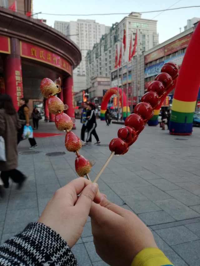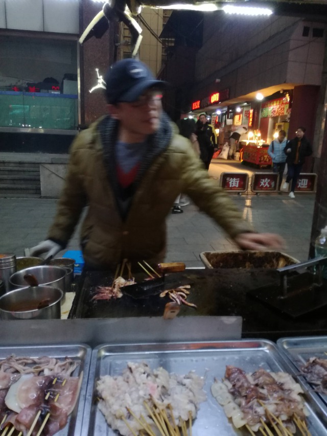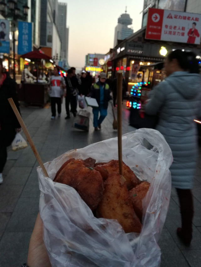 Ci siamo fermate lì un po' a chiacchierare e poi siamo andate in una via in centro piena di negozi, ma soprattutto famosa per le baracchette di street food. Allora abbiamo deciso di cenare mangiando dalle baracche e vedere Anshan con il buio (il sole tramonta alle 5).