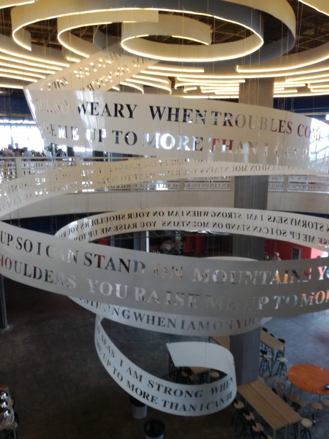 Dopodiché andiamo nella parte di mensa riservata agli insegnanti e mangiamo con loro. A differenza degli studenti che hanno il cibo su un tavolo per classe e devono fare a gare per chi mangia prima, noi abbiamo un buffet ed il cibo la maggior parte delle volte è buono.