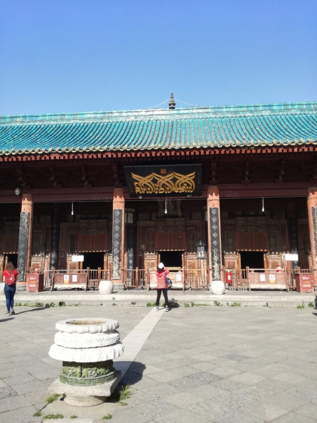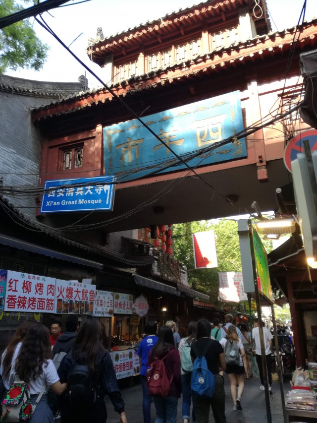 Dopo aver pranzato siamo andati alla GRANDE MOSCHEA. È una delle moschee più vecchie, ampie e meglio preservate di tutta la Cina. Sorge nel centro della città vecchia. Sarebbe stata costruita sotto la dinastia Tang, nel 742. Venne eretta come risultato dell'introduzione dell'Islam nel nord-ovest della Cina da parte di alcuni mercanti originari della Persia e dell'Afghanistan durante la metà del VII secolo che si stabilirono in Cina e sposarono donne Han. La moschea ha un'architettura particolare, in quanto mescola lo stile musulmano a quello cinese. A prima vista non sembrerebbe una moschea, in quanto gli esterni sono in stile cinese, però le decorazioni e gli interni sono in stile islamico. Occupa un'area di oltre 6.000 metri quadrati ed è divisa in quattro cortili interni. È l'unica moschea in tutta la Cina ad essere aperta a visitatori, tuttavia ai visitatori non musulmani non è permesso entrare nella sala di preghiera.