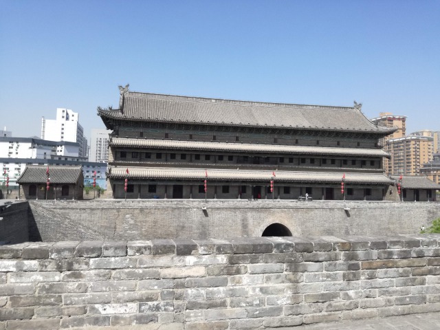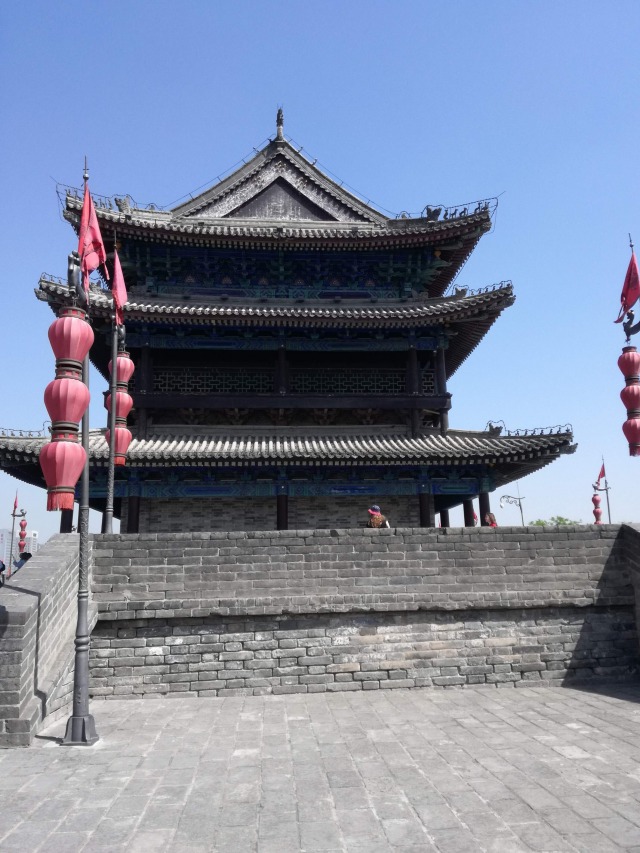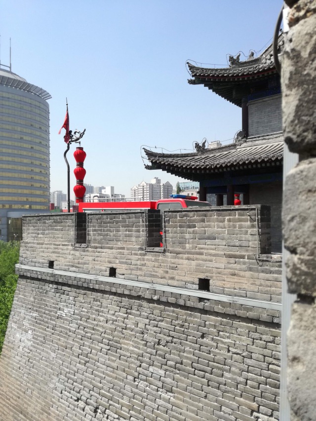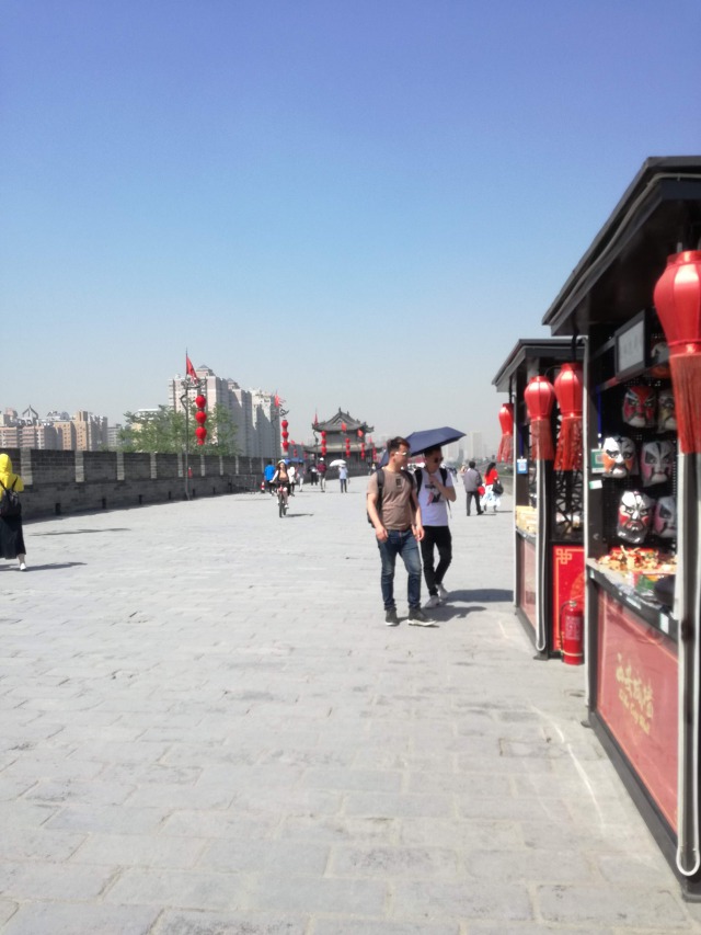 Dopo aver fatto colazione siamo usciti di buon’ora e siamo andati a visitare le MURA DELLA CITTÀ. Sono le cinte murarie più complete di tutta la Cina. Sono lunghe quasi 14 chilometri, alte 14 metri e larghe 12-14 metri. Vennero costruite nel XIV secolo dall'imperatore Hongwu, primo imperatore della dinastia Ming, come un sistema di difesa. Negli anni a venire vennero ampliate molte volte dalle dinastie seguenti. Ogni 120 metri si trovano dei bastioni, per un totale di 98; che permettevano ai soldati di avvistare i nemici. Noi abbiamo visitato le mura in bici, era un'opzione facoltativa. Io ed una mia amica abbiamo deciso di prendere un tandem e abbiamo impiegato un'ora e mezza per percorrere parte delle mura. Anche questo giorno la temperatura era alta ed il caldo si faceva sentire.