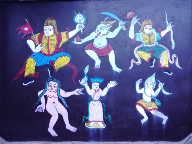 Eravamo gli unici turisti. Abbiamo visto alcuni spettacoli, lungo le vie del paese: alcuni uomini cantavano, un signore apparentemente già di mezza età saliva e scendeva su una scala formata da coltelli senza alcun tipo di protezione sulle mani e sui piedi. Quello che però mi ha scioccata di più è stato un altro uomo, che, dopo aver tolto una pala incandescente dal fuoco, l'ha toccata con i piedi, ma soprattutto l'ha leccata. Faceva più freddo del previsto, ci sono circa 0°C, ma era prevedibile, perché siamo a dicembre ed alle pendici all'Himalaya!