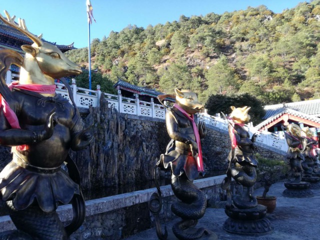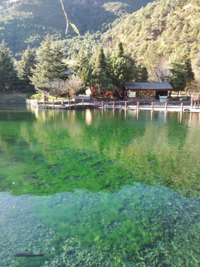 Dopodiché siamo andati a 玉水寨 (yùshuǐzhài), Jade water village, che si trova a 3000 metri di altitudine sul livello del mare. Anche questo posto è vicino a Jade Dragon Snow Mountain. Qui abbiamo potuto vedere le tipiche case delle persone Naxi ed anche il "Dongbashiluo temple". Anche questo posto è ricco di laghetti. L’acqua, elemento sacro per i Naxi, sgorga da sotto un albero vecchio qualche centinaio di anni e va a finire in tre piccole piscine, in cui ci nuotano dei pesci rossi.